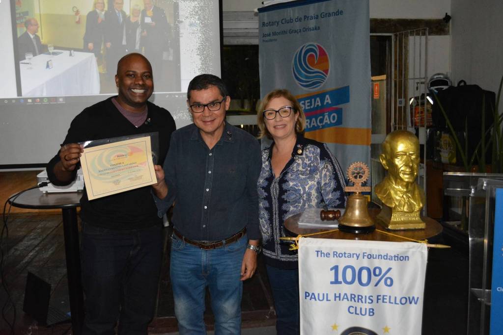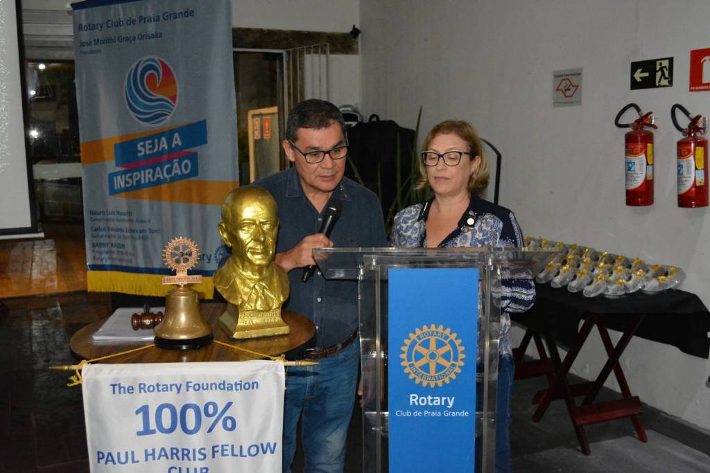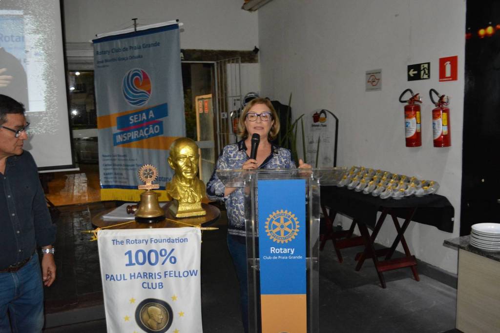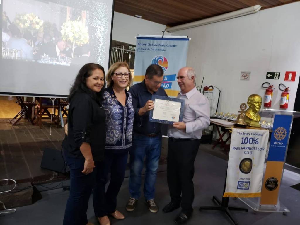O Rotary Club de Praia Grande realizou na última terça feira dia 25 a última reunião da GESTÃO INSPIRADORA sob a presidência de JOSE MORITHI GRAÇA ORISAKA. O evento teve lugar no Deck Mallet e nessa reunião de despedida de sua gestão foram feitas diversas homenagens: a companheira Márcia Regina de Andrade e Silva foi agraciada com o título de Palestrante inspiradora, os companheiros Aldo Masotti, Therezinha Masotti e Rodrigo Gasparino receberam o título de Companheiros Inspiradores. Alguns companheiros também foram agraciados com o título de companheiro Paul Harris, maior homenagem concedida pelo Rotary Internacional: Márcio Leite, João Gomes (1.a safira), Luiz Campos (2.a safira), Sílvio Luís dos Anjos (3.a safira) e José Morithi Graça Orisaka (2.o Rubi). Receberam ainda placas de prata de agradecimento pelo trabalho durante a gestão inspiradora os companheiros: Marco Avila, Milton Chapeta e Nauro Masotti. A primeira reunião de julho, dia 2, já será presidida por Valdenice Batista Chapeta, Presidente conectada com o mundo. Essa reunião será uma Assembleia onde serão estabelecidas as diretrizes da nova gestão que agora se inicia.