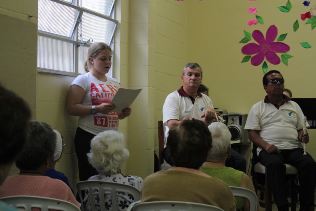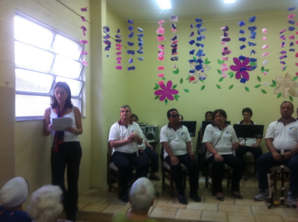 Nos intervalos entre uma música e outra, os idosos eram brindados também com a leitura de contos e poesias do projeto Leitores de Luz, projeto criado pela companheira Thais F.Coelho, do RC S.André Alvorada, projeto este desenvolvido e praticado na casa dia Mãezinha Joana, pelos rotarianos do RC Santos Aparecida.