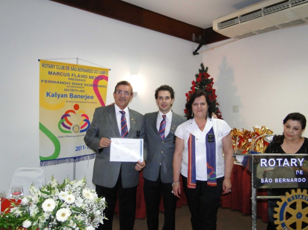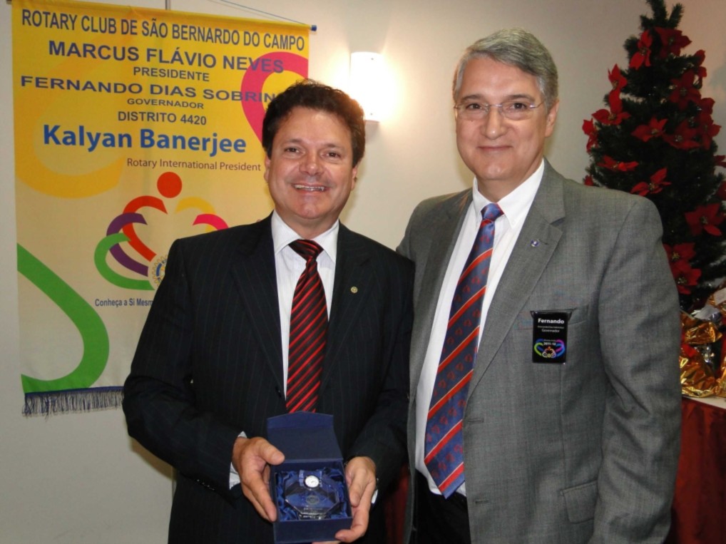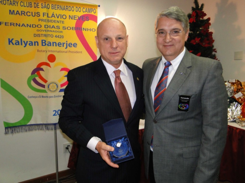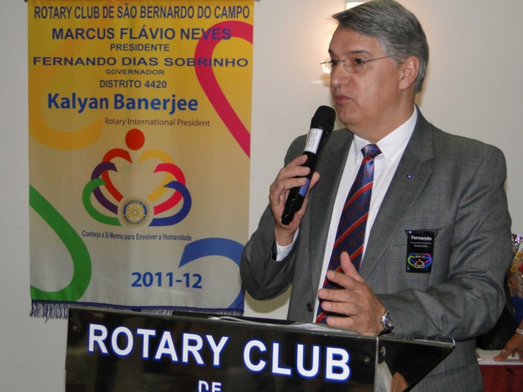O presidente do Rotary Club de São Bernardo do Campo, Marcus Flávio Neves, encerrou no dia último dia 16, as atividades rotárias do ano 2011, recebendo a Visita Oficial do Governador Fernando Dias Sobrinho e sua esposa, Sonia.