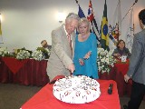 Após um belo jantar cehio de homenagens, finalizando a parte protocolar, os rotarianos vivenciaram um momento de confraternização, acompanhado de música ao vivo, com direito a bolo e apagar das velinhas, pelo fundador do clube, Otto João Gustavo Bethke e sua esposa Antonieta.