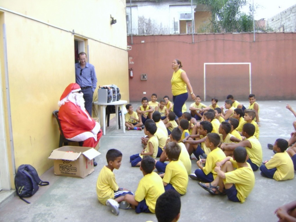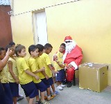 Na foto, um registro do evento que despertou a alegria do Natal para muitas crianças que recebem assistência do GALP, entidade apoiada pelo RC Santos Monte Serrat.