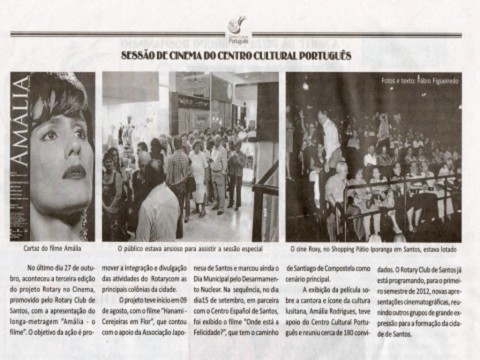 Promover cultura e levar entretenimento para a comunidade é uma das propostas do Rotary Club Santos, que realizou no dia 27 de outubro, a 3ª edição do projeto Rotary no Cinema, evento que foi notícia no jornal do Centro Cultural Português, em Santos-SP.